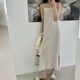 可青清單/雙面穿!日系風細肩帶後抽繩美背下擺開叉長洋裝(摩卡/黑/米白)