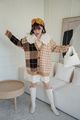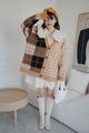 安安清單/學院風格紋拼接千鳥紋針織保暖毛衣外套(太妃糖色)