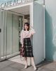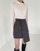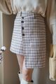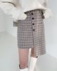 安安清單/小香風千鳥格斜釦造型長短裙(咖啡黃/灰粉/黑白)