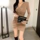 家琪、安安清單/扭結造型顯瘦抓皺內刷毛短洋裝(白/杏/黑)