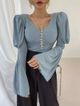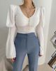 「小安選品」百搭顯瘦V領造型公主袖上衣(5色)