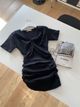 「小安選品」超顯瘦抓皺V領修身棉質洋裝(4色)
