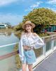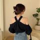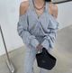 家琪清單/造型露肩排扣棉質上衣(白/黑/灰)